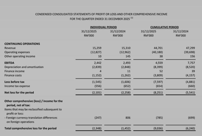Quarterly Report For The Financial Period Ended 31 December 2025